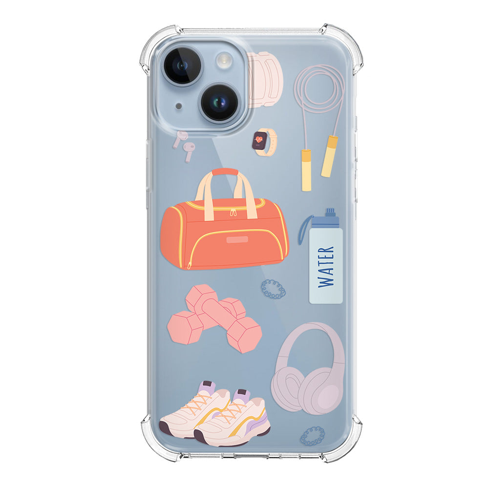 Цей силіконовий чохол від українського бренду Gisolo поєднує міцність і яскравий спортивний дизайн. Елементи фітнесу — кросівки, навушники, гантелі, пляшка з водою — створюють образ, що відображає любов до спорту та динамічного ритму життя.