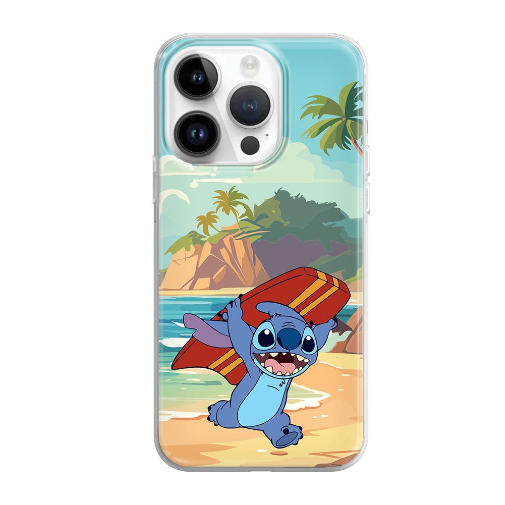 Чохол «Стіч на пляжі» для iPhone 13 mini — веселий та яскравий аксесуар для фанатів мультфільму «Ліло та Стіч». На чохлі зображено Стіча, який біжить по пляжу із дошкою для серфінгу, що додає смартфону індивідуальності та позитивного настрою.