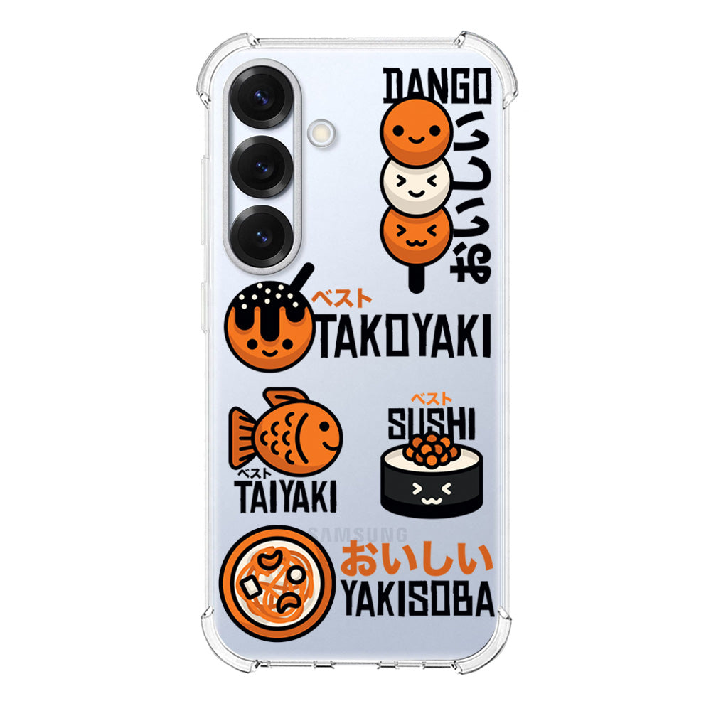 Вулична кухня Японії тепер завжди поруч із вами. Чохол "Japanese Street Food" для Samsung S24 FE поєднує практичність захисту смартфона з яскравою естетикою японських смаків. Кольорові ілюстрації данго, такоякі та якісоби нагадують про атмосферу нічних фестивалів і прогулянок вузькими вулицями Токіо.