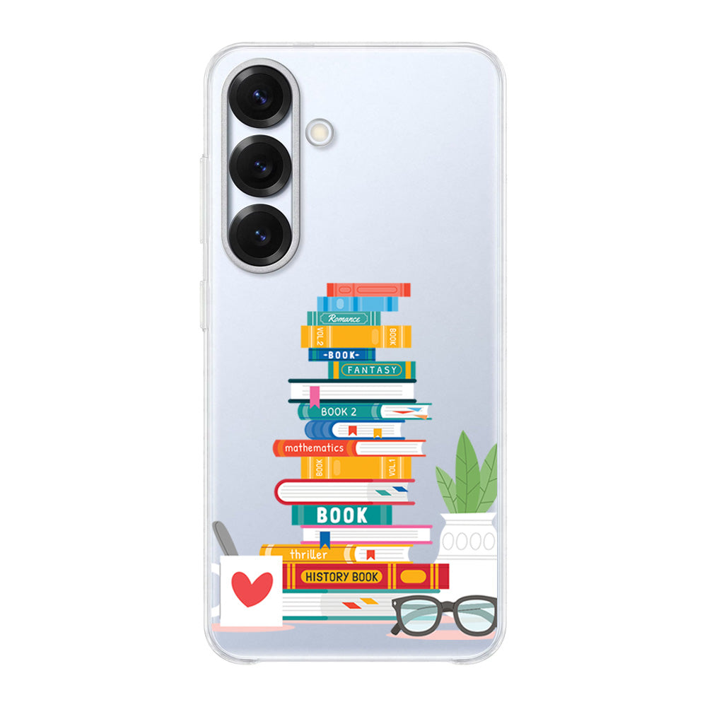 Чохол "A pile of books" для Samsung S25 — стильне поєднання надійного захисту та натхненного дизайну для справжніх книголюбів. Ілюстрація зі стопкою книг, вазоном і чашкою створює атмосферу домашнього затишку, роблячи ваш смартфон не просто гаджетом, а відображенням ваших інтересів.