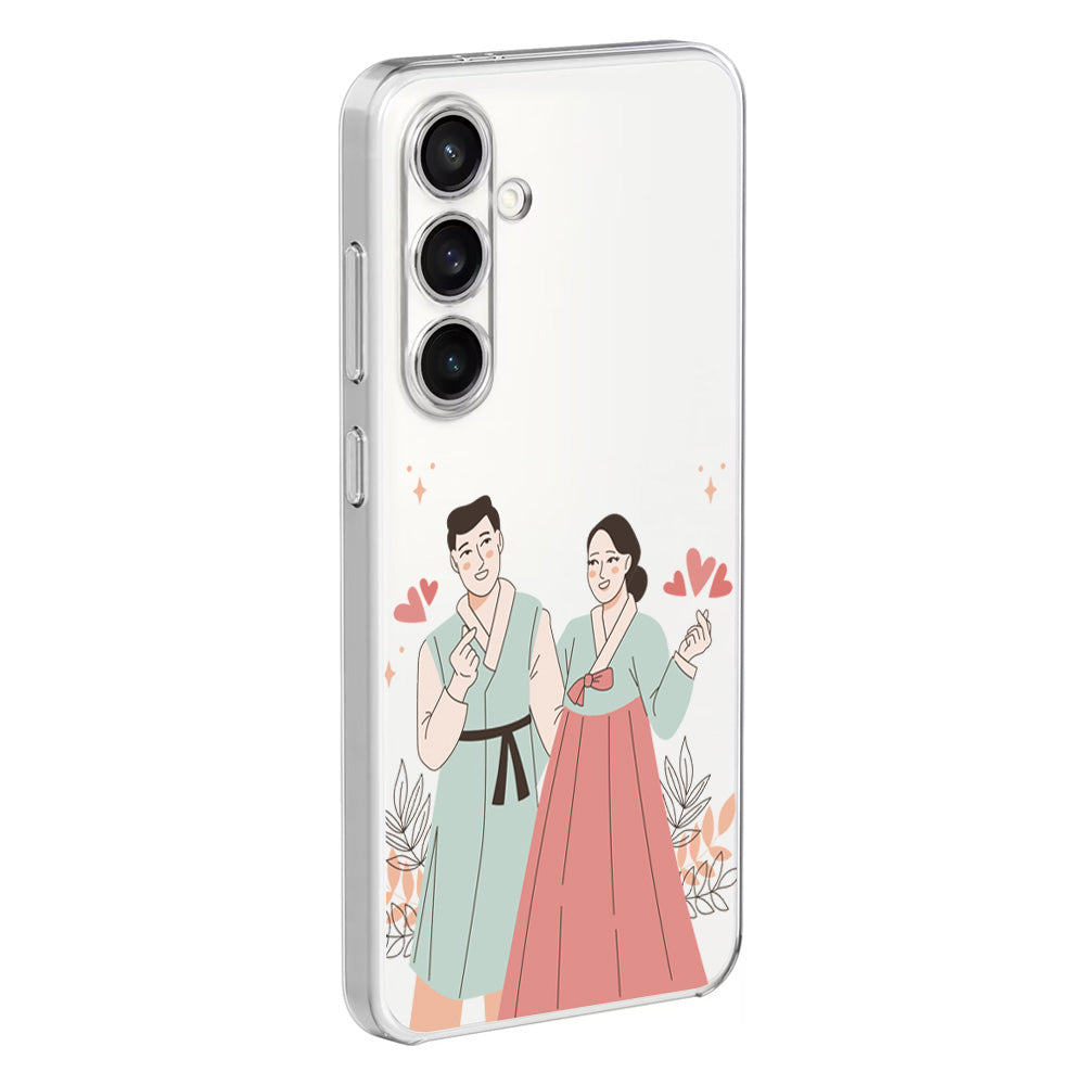 Чохол «Парочка в ханбоках» для Samsung S24 — це витончений аксесуар, що поєднує традиційну корейську естетику з сучасним стилем. Дизайн із парою в національних костюмах ханбок символізує гармонію, ніжність і повагу до культури. Цей чохол не просто захищає смартфон — він розповідає історію про кохання, красу й традиції, додаючи вашому пристрою особливого шарму.