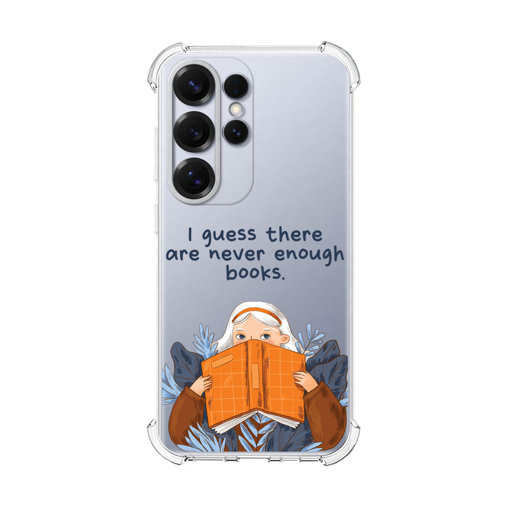Чохол «There are never enough books» для Samsung S25 Ultra — це стильний аксесуар для тих, хто цінує книги та комфорт у повсякденному житті. Малюнок дівчини, що читає книгу, із надписом I guess there are never enough books надає смартфону індивідуальності та затишного шарму. Цей чохол поєднує естетику та практичність, забезпечуючи надійний захист Samsung S25 Ultra від подряпин, ударів і щоденних пошкоджень.